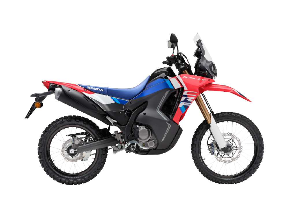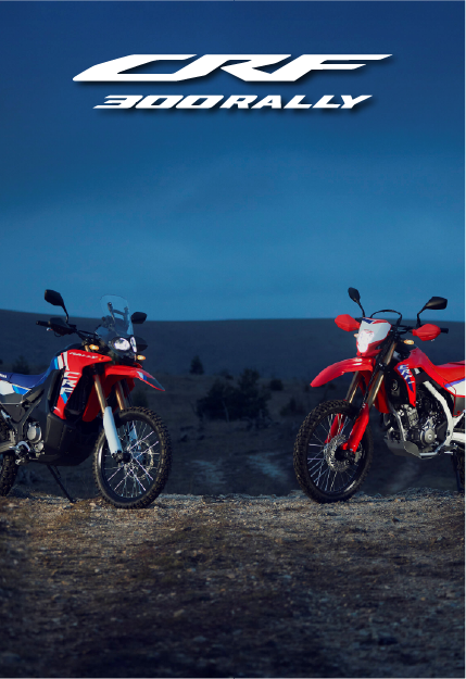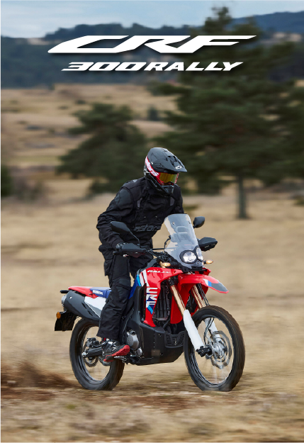 在CRF300L的基礎下,強化了巡航距離與舒適度,外觀復刻達卡拉力賽的CRF450 RALLY,把「周末冒險家」的設計理念完整呈現。CRF300 RALLY透過調整騎姿、增加油箱容量、加大的風鏡並修改外殼形狀,盡力提高長途巡航的舒適度,同時維持CRF300L的走破能力,使用前21吋/後18吋的輪胎配置,以及長行程的懸吊,保有足夠的離地高與越野能力,拉力精神都在這裡!