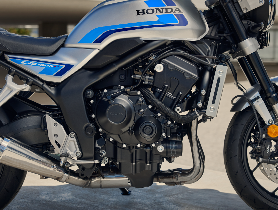 全新 CB1000F 的登場,不僅延續 Honda CB 家族的經典傳承,更以融合復古風格與現代科技的設計理念,為性能街車市場帶來嶄新的騎乘體驗。動力方面,搭載源自Honda標誌性的CBR1000RR Fireblade四缸引擎,並透過多項專屬調校帶來截然不同的動力表現。包含重新設計的進排氣凸輪軸與更優異的進氣設定,使引擎可輸出最大馬力100 hp/9,000 rpm,以及最大扭力103 Nm/8,000 rpm。經過重新調校後的動力輸出更著重於日常騎乘的實用性,提供綿密且均衡的性能表現,同時帶來極具魅力的四缸引擎聲浪。