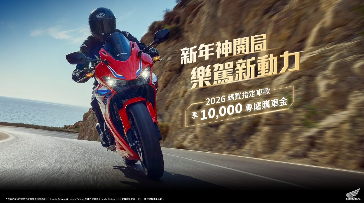 Honda Taiwan 秉持 「The Power of Dreams – How we move you.」 的品牌精神,致力於提供卓越的產品與服務,讓每一位騎士都能在多樣化的產品線中,找到專屬於自己的騎乘樂趣,於2026年1月推出多項購車優惠專案,無論是都會通勤URBAN車系到帥氣有型的SPORTS車系,指定車款,皆可享一萬元專屬購車金優惠,以最輕鬆的方式,即刻跨上心儀的Honda夢想車款,享受暢快的騎乘樂趣。同時針對搭載全新科技的CBR650R E-Clutch以及經典美式巡航Rebel500,推出限時專屬優惠。