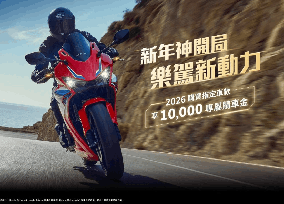 Honda Motorcycle 新年神開局 樂駕新動力 2026購買指定車款 享一萬元專屬購車金 Rebel500、CBR650R E-Clutch 60期、零頭款、零利率